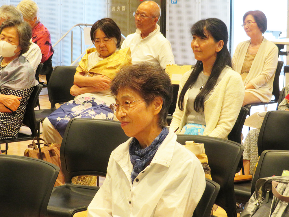 7月26日の気温は36度。今年は梅雨明けと同時に別格の暑さが続いている。駅からアミュゼ柏までは十分ほどだが、ヘたっている体に、日差しの圧力がのしかかる。そんな酷暑の中、集まる皆さんの笑顔と笑顔。会えば元気な会話が生まれる。会員同士の交流がエネルギーチャージにもなっているようだ。参加者51名、欠席投句者29名 計80名の参加。